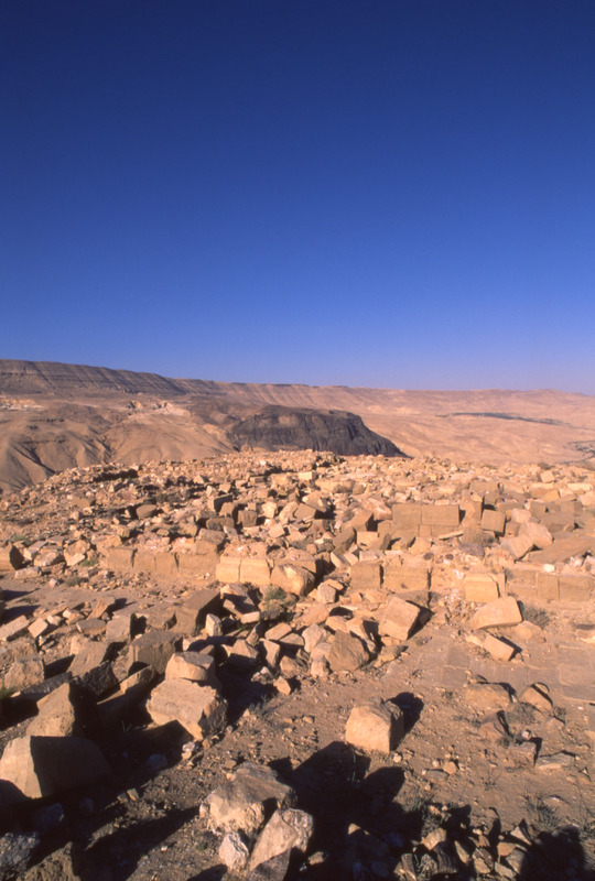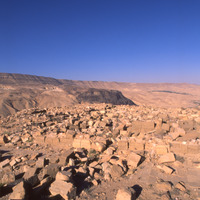 Khirbet et-Tannur, view east along Wadi Hasa and volcanic rock
