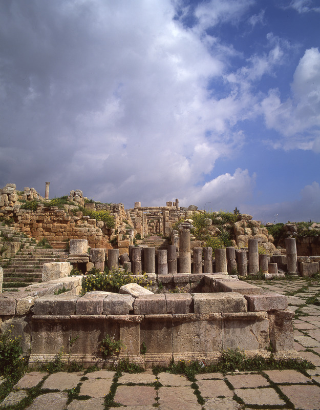 Jordan. Jerash, Fountain Court, Serapion passage in background