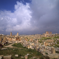 Jordan. Jerash, Fountain Court, St. Theodore's church behind