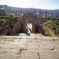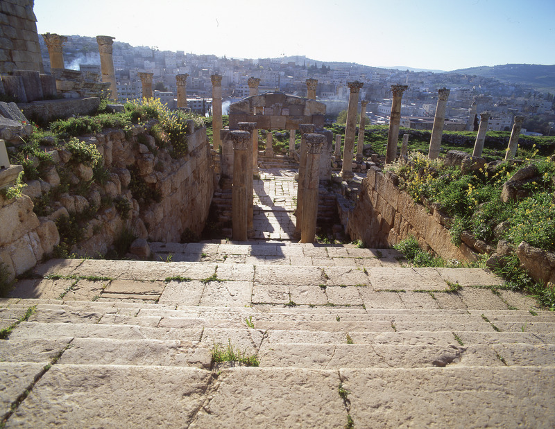 Jordan. Jerash, doorway and stairs from Cardo to Cathedral