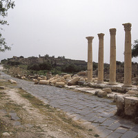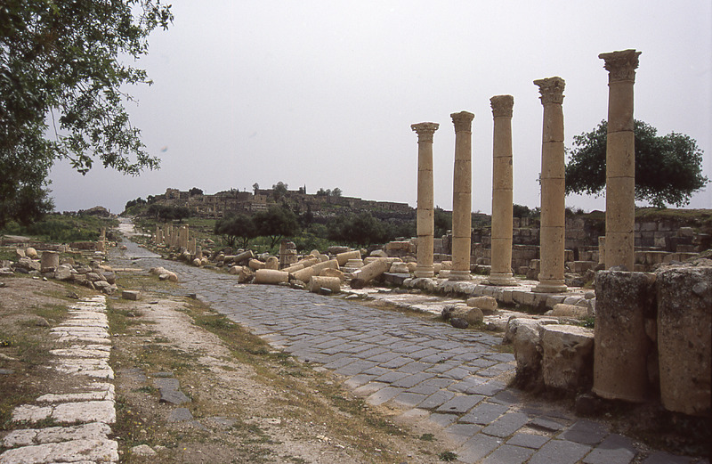 Umm Qais / Gadara, colonnaded Cardo, view east to citadel