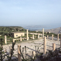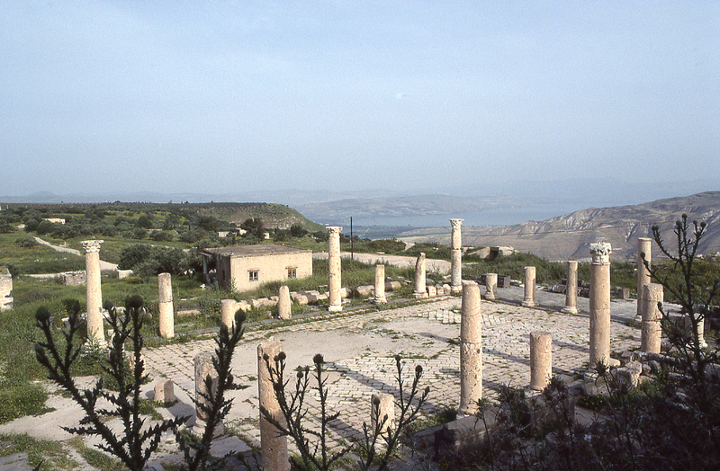 Umm Qeis, colonnaded courtyard and Lake Tiberias