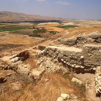 Jordan. Tall as Sa'idiyyah, mud brick walls and Jordan valley in background, looking north