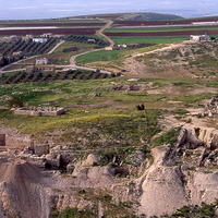 Pella (Tabaqat Fahl), main tell, left Bronze Age temple, excavation to Chalcolithic with Byzantine / Umayyad houses above