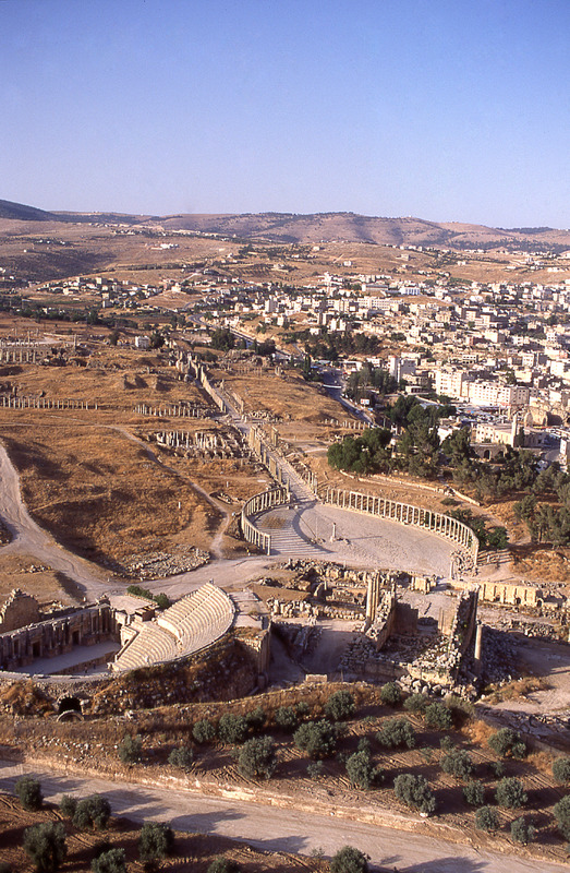 Jordan. Jerash, South Theater, Temple of Zeus, Oval Piazza