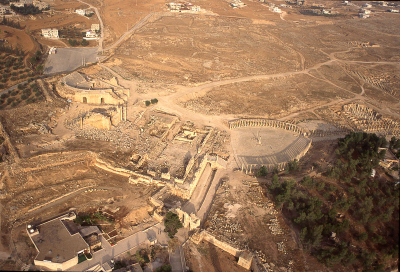 Jordan. Jerash, Oval Piazza, Zeus Temple and South Theater