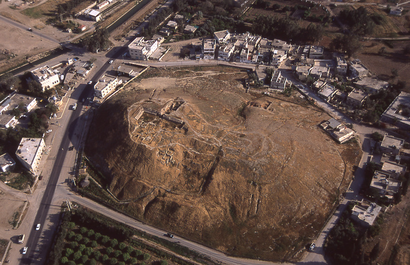 Jordan. Deir Allah, ancient tell in middle of town, view from east