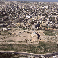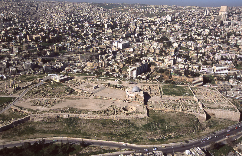 Amman Citadel from east, Umayyad complex right, Hercules Temple left
