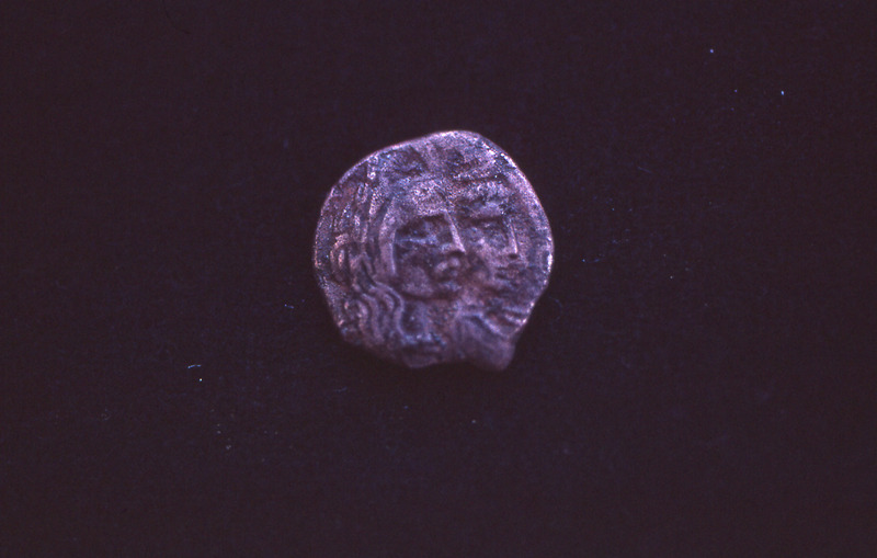 Nabataean coin showing profiles of Aretas IV and Queen Shaqilath