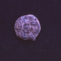 Nabataean coin showing profiles of Aretas IV and Queen Shaqilath