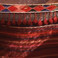 Petra, bedouin tent, dappled sunlight on wall of women's room