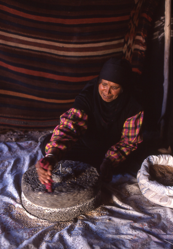 Petra, bedouin tent, grinding corn
