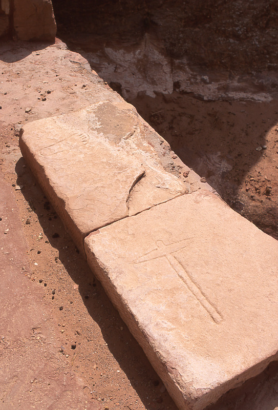 Petra, Nabataean workman's rock sketches (pick and foot)