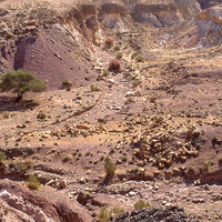 Camel trek, Wadi Abu Khusheibeh and acacia tortilis ans Nabataean ruins
