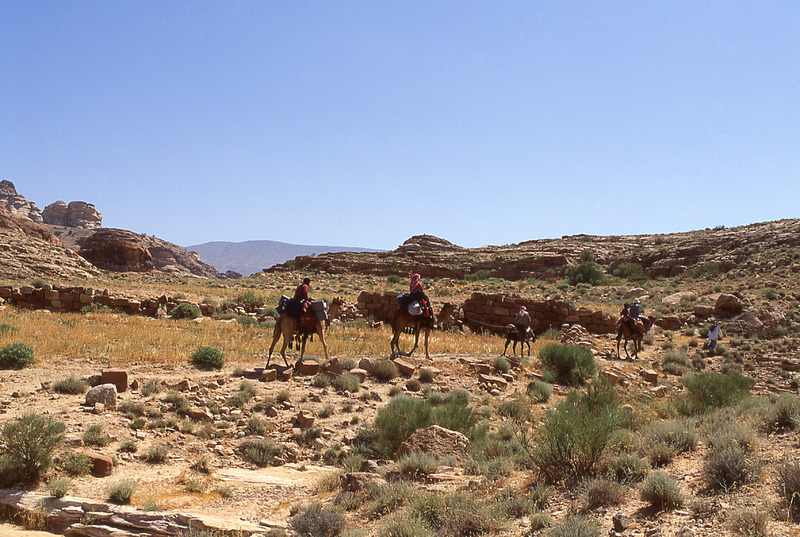 Camel trek, re-used Nabataean terraces in Wadi Sleisel