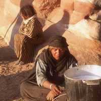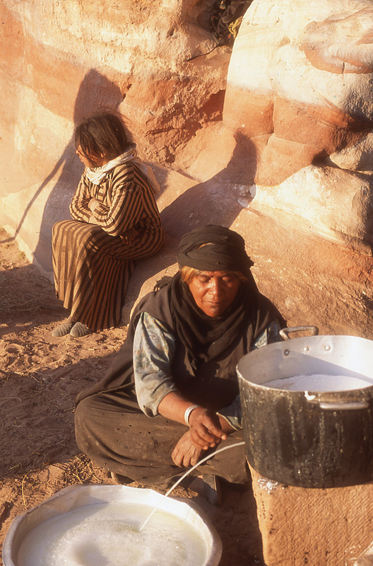 Petra, Bdoul bedouin women at Mughar An-Nasara separating whey from cruds