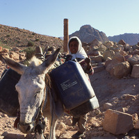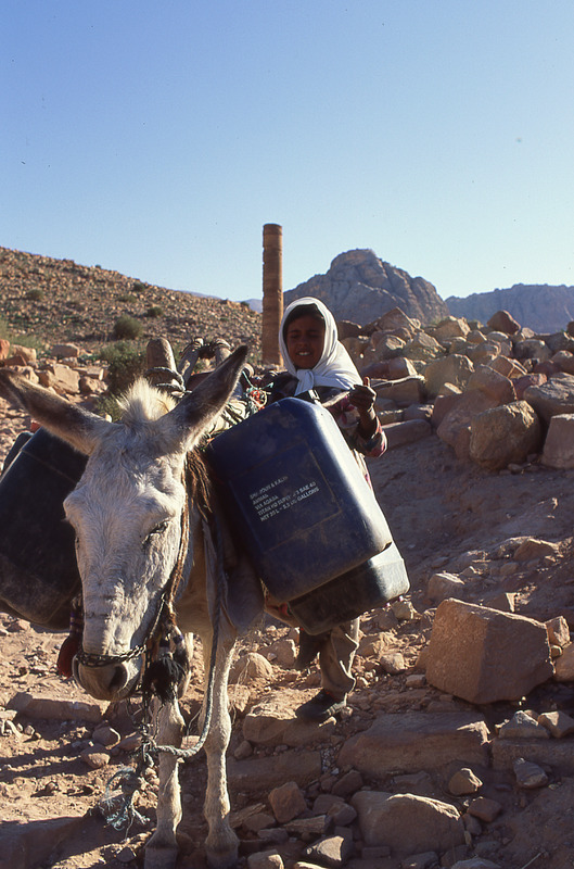 Petra, Bdoul bedouin girl and donkey near Zibb Faraoun