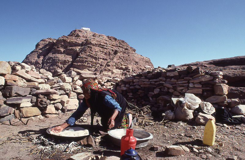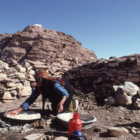 Petra, Jabal Haroun, Bedouin woman from Wadi Araba making bread