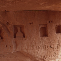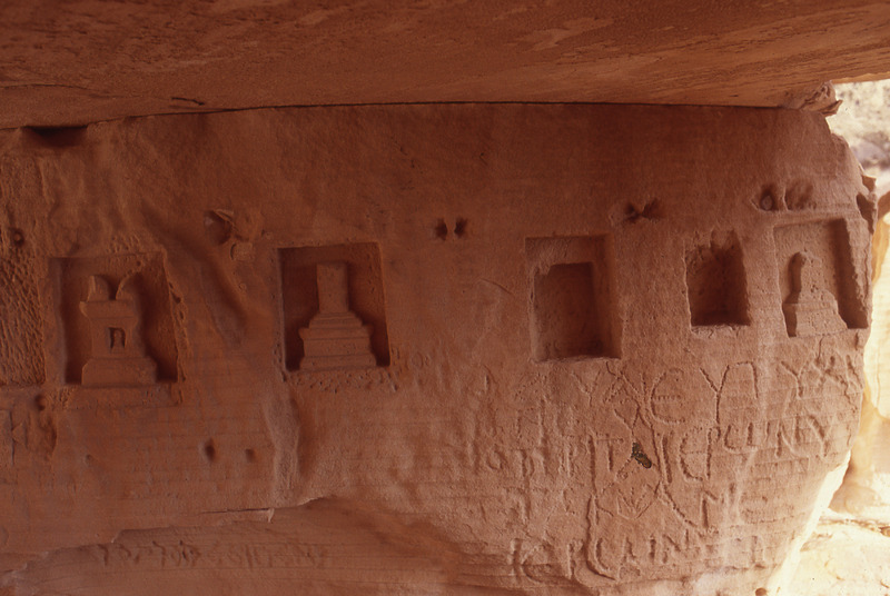Petra, Umm Al-Biyara, niches and inscriptions in cave