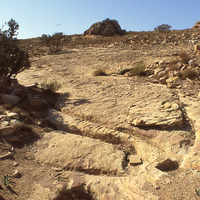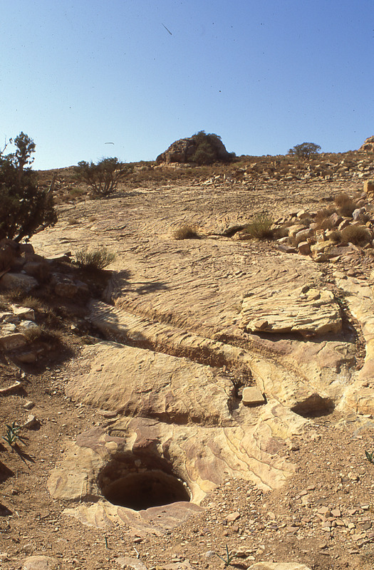Petra, Umm Al-Biyara, cistern entrance and water channels