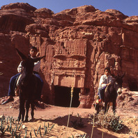 Petra, Turkmaniyya Tomb and bedouin boys on donkeys