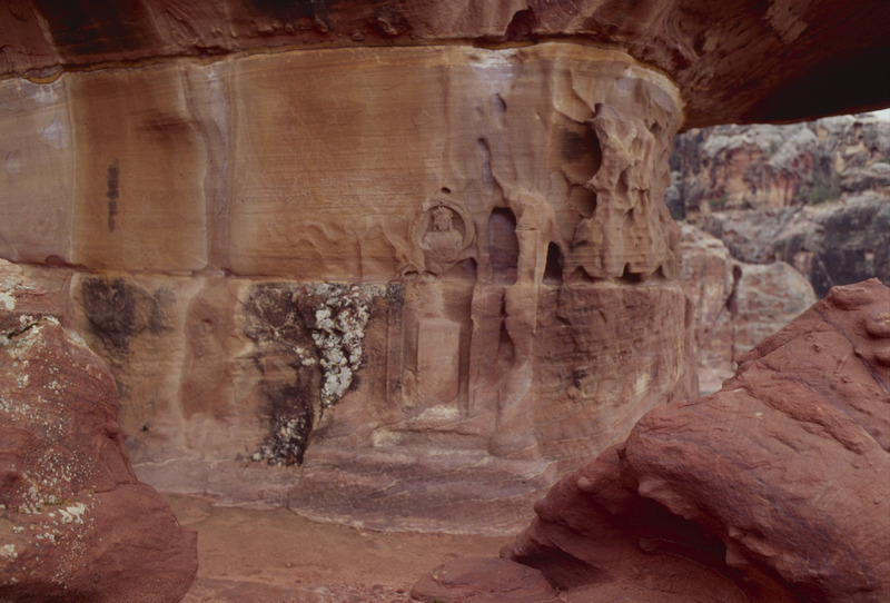 Petra, Dushara block and Dionysus medallion in Wadi Farasa