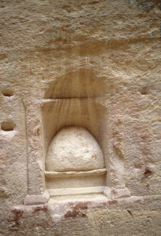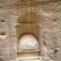 An egg-shaped shrine in the Siq, identifies by a greek inscription as dedicated to dushara of Adra'a, it is dated to the 2nd century AD