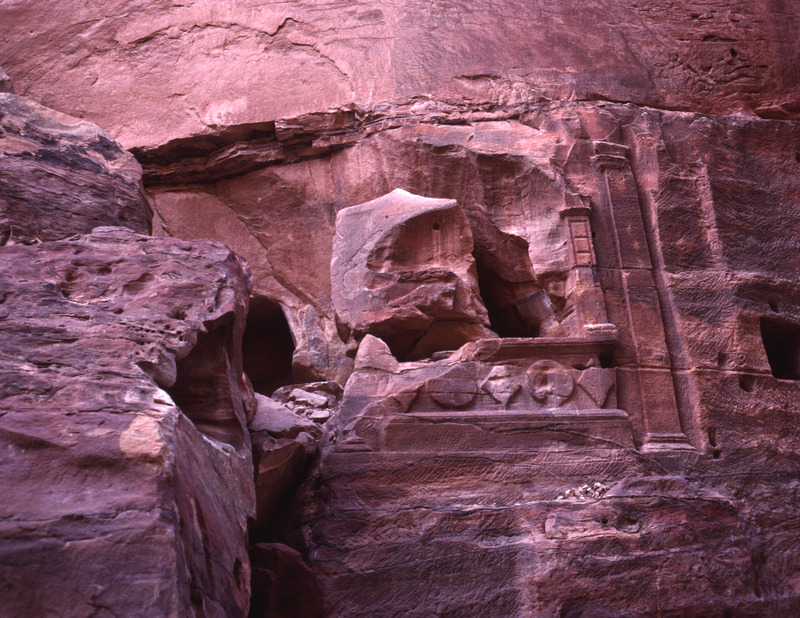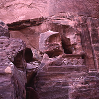 Petra, fallen tomb façade in outer Siq, drawn by Laborde 1829; fell 1847 during Harriet Martineau's visit