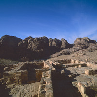 Petra, house on ez Zantur, Qasr al-Bint behind
