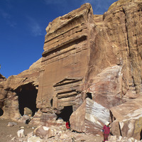 Petra, Bedoul bedouin girls outside tomb home at Mughar an-Nasara