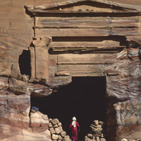 Petra, Bedoul bedouin girl entering tomb at Mughar an-Nasara