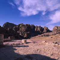 Petra, house on ez Zantur, Qasr al-Bint behind