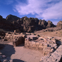 Petra, house on ez Zantur, Qasr al-Bint behind