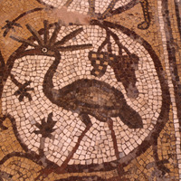 Petra, mosaic of crested stork north aisle, Byzantine church, sixth century AD