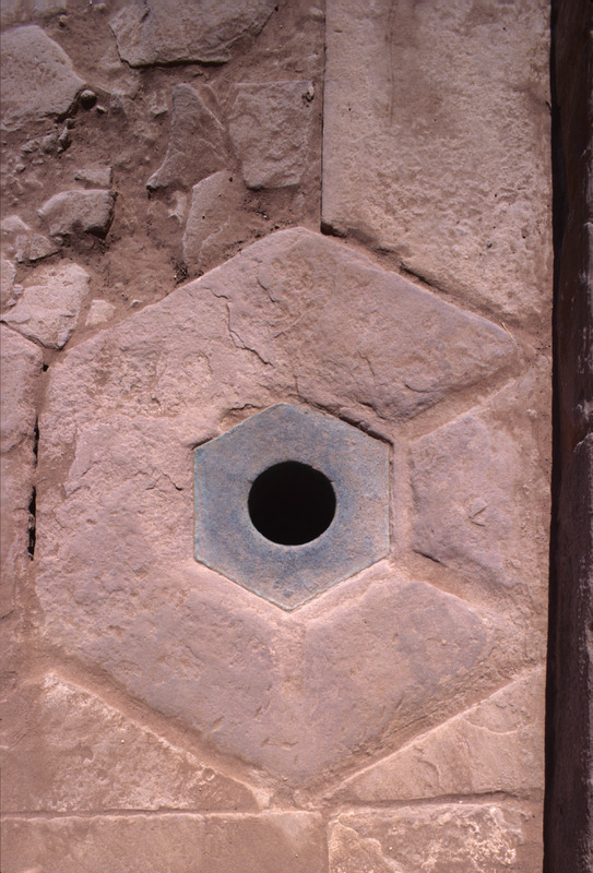Petra, Great Temple, drain hole and copper trim, lower terrace