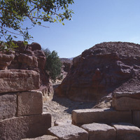 Petra, Nymphaeum back wall, to end of Wadi Matah