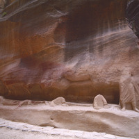Petra, Siq, relief carving of camel caravan