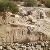 Petra, funerary stele carved in the rock face opposite the dam at the mouth of the Siq