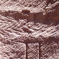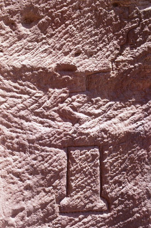 Petra, Tomb 825, 'god-block' and cornice pattern cut in rock