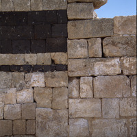Qasr al-Hallabat, exterior wall abutment and closed doorway