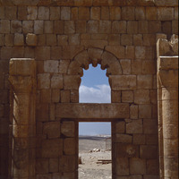 Qasr al-Hallabat, eighth century Umayyad Mosque with cusped arch