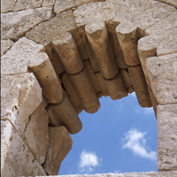 Qasr al-Hallabat, eighth century Umayyad mosque, detail of cusped arch