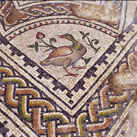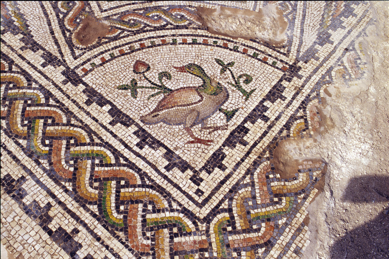 Qastal, mosaic of duck from lion/bull scene, Umayyad, eighth century