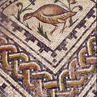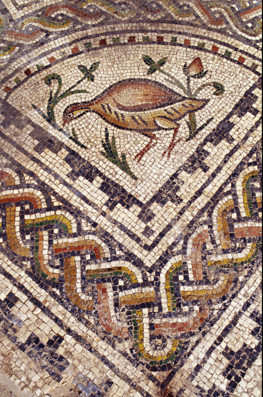 Qastal, mosaic of partridge from lion/bull scene, Umayyad, eighth century