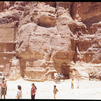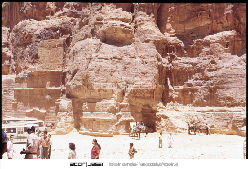 Petra - A scene from Street of Facades - a number of visitors and tour guides