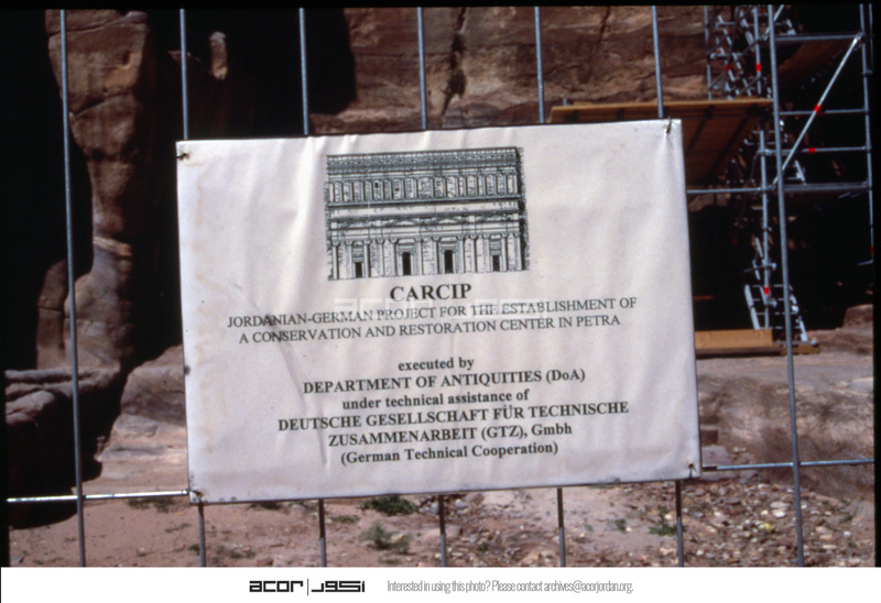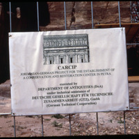 Sign for establishment of a Conservation and Restoration Center in Petra