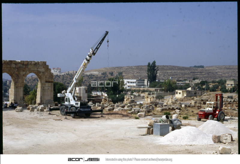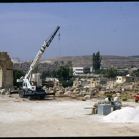 Jerash - heavy equipment at Hippodrome reconstruction during restoration work