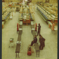 Unidentified factory floor with machinery, site of H. M. King Hussein's visit