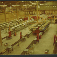 Unidentified factory floor with machinery, site of H. M. King Hussein's visit