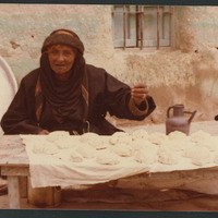 Woman selling bread dough[?]